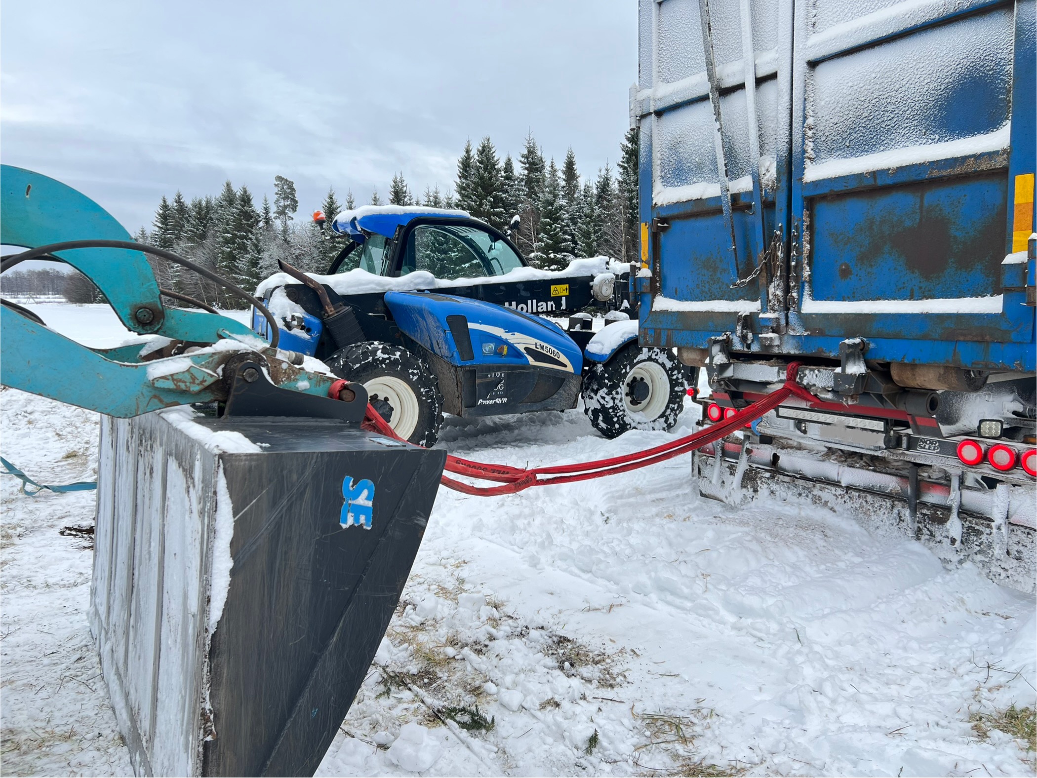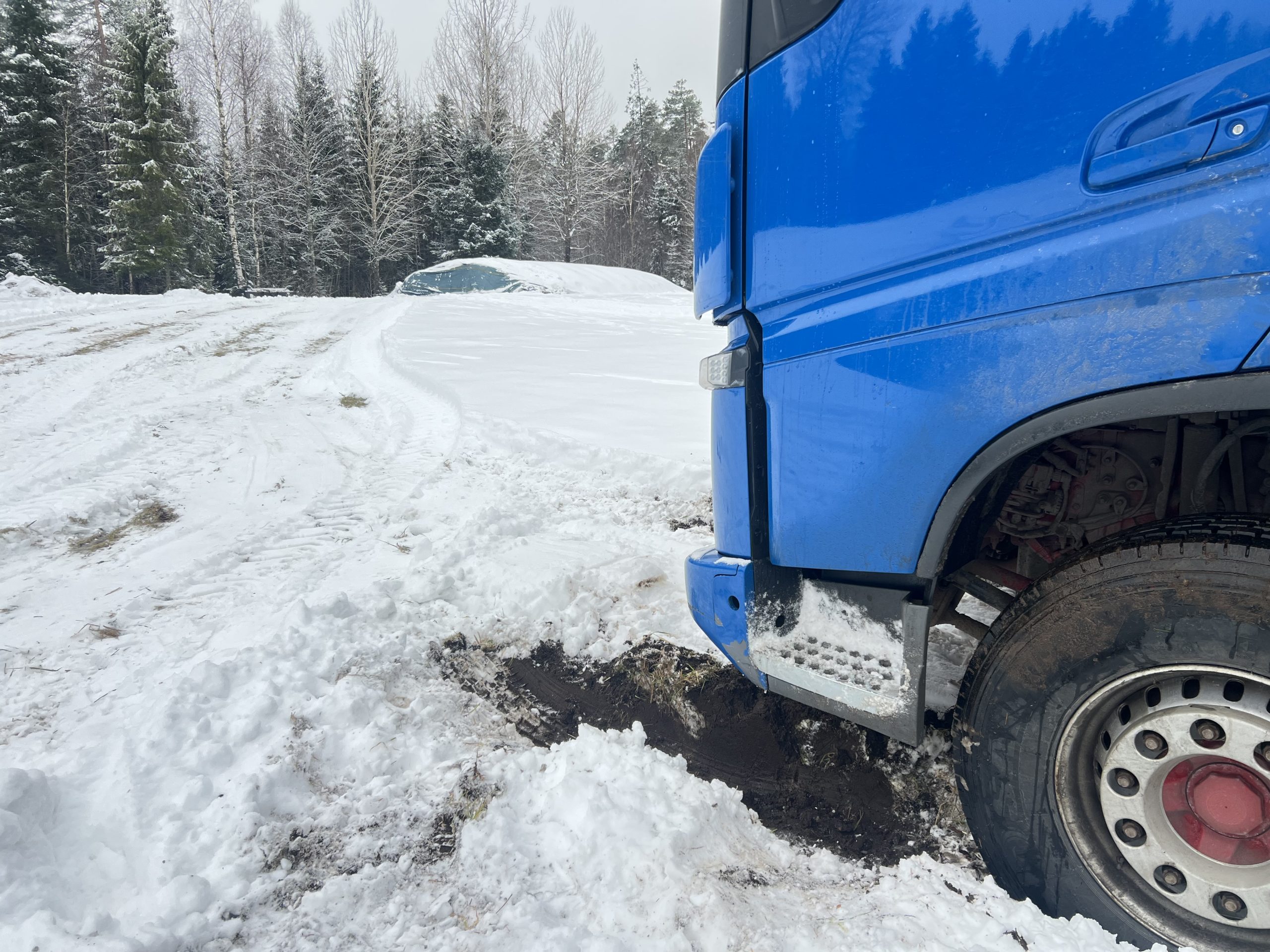 Idag visade det sig att tjälen inte var så djup som vi hoppats på och grannens lastbil valde att bara slira.
