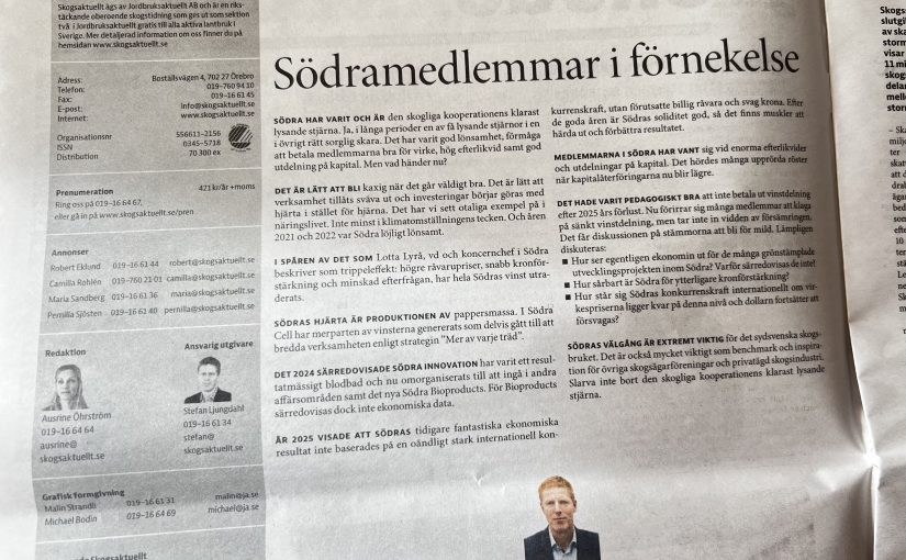 Efter mitt förra inlägg om insatskapital och styrelsens förslag på utdelning till Södramedlemmar har telefonen gått varm, men samtidigt som jag funderar på hur någon som inte verkar ha rent mjöl i påsen ska kunna sitta kvar som ordförande, har utbildningens sista inlämningsuppgift behövt bli färdig.