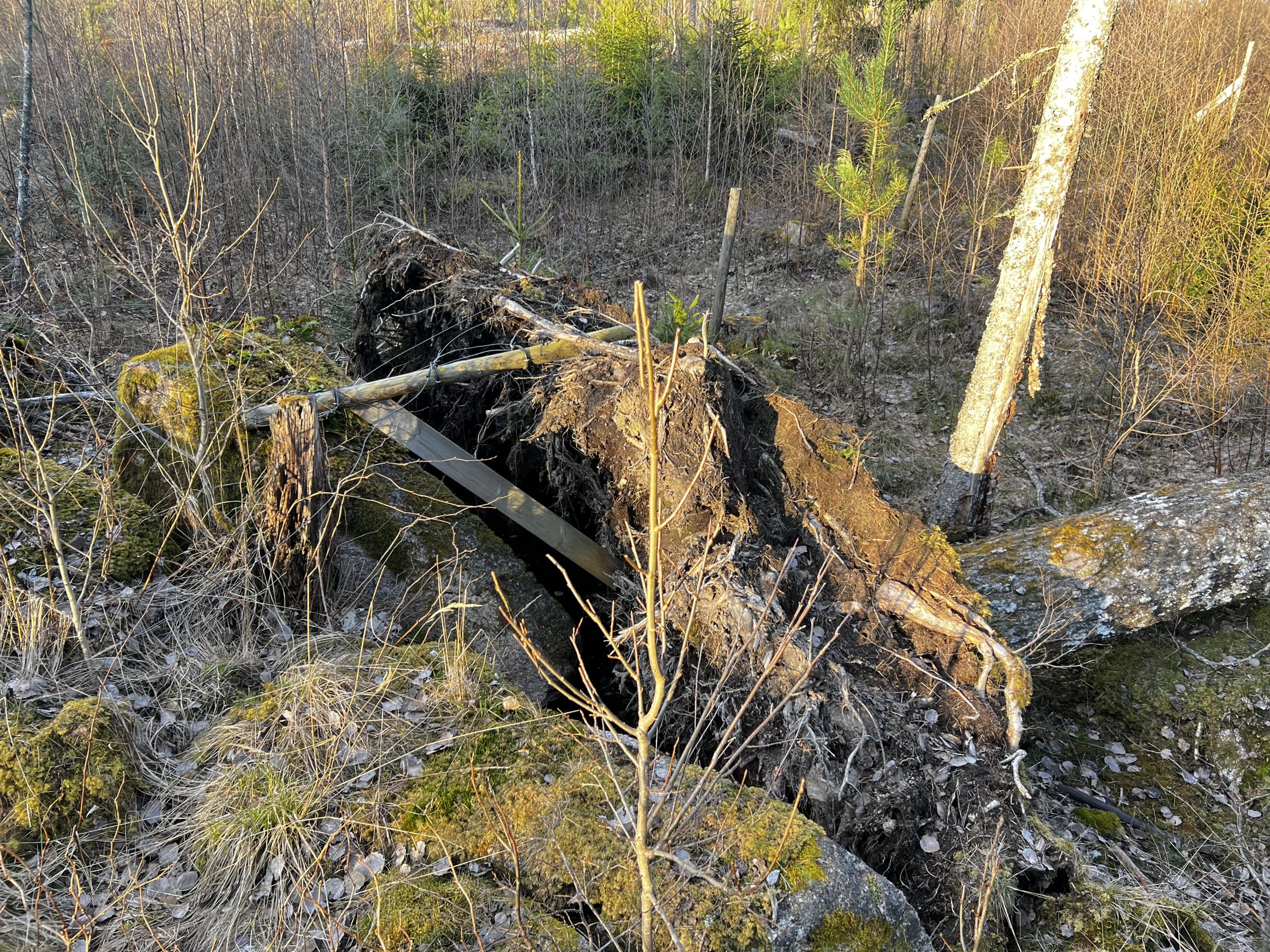 Avslutade dagen med att se över staketet till hästhagen och hittade en asp som tagit med sig en staketstolpe i fallet.