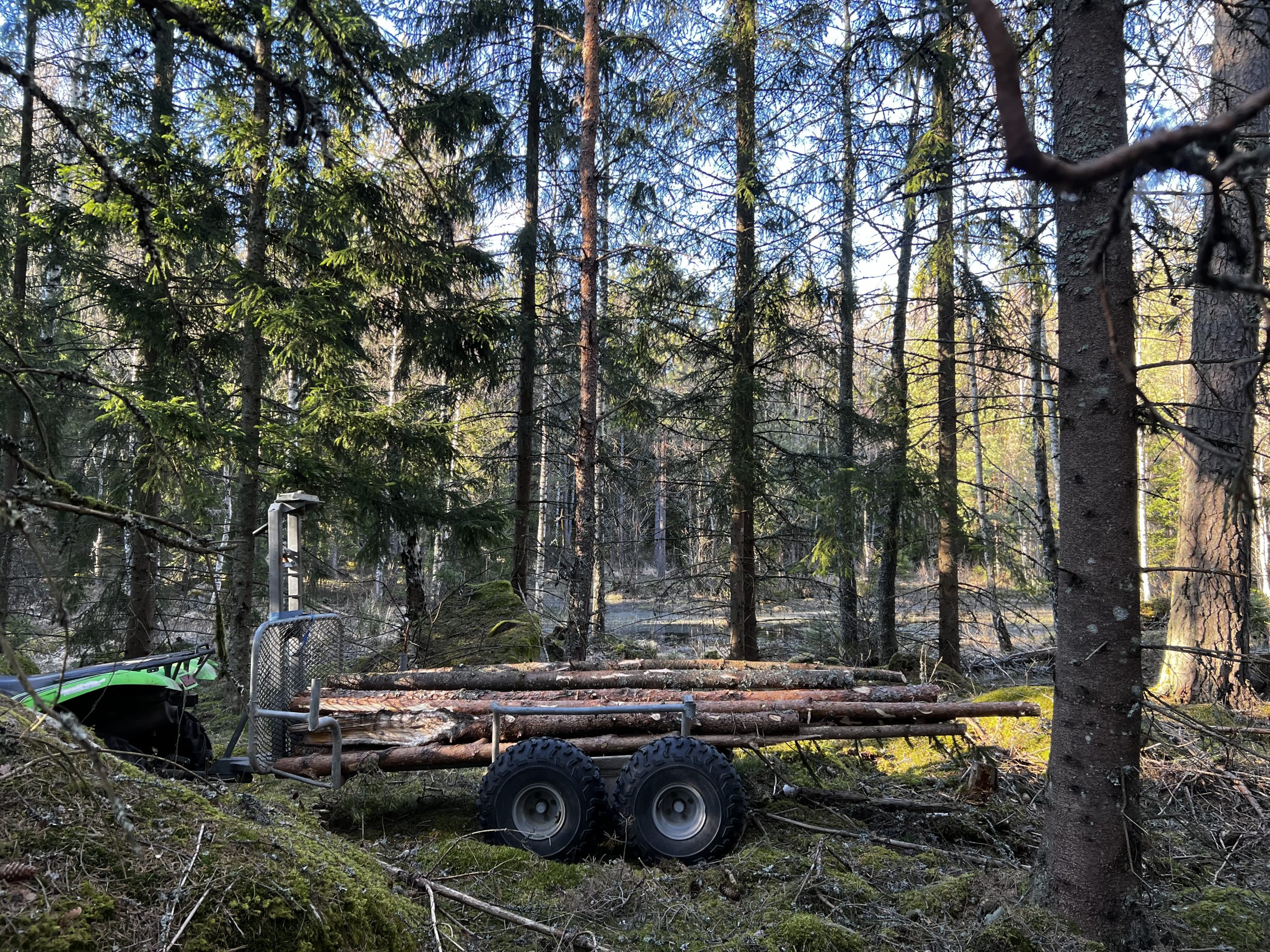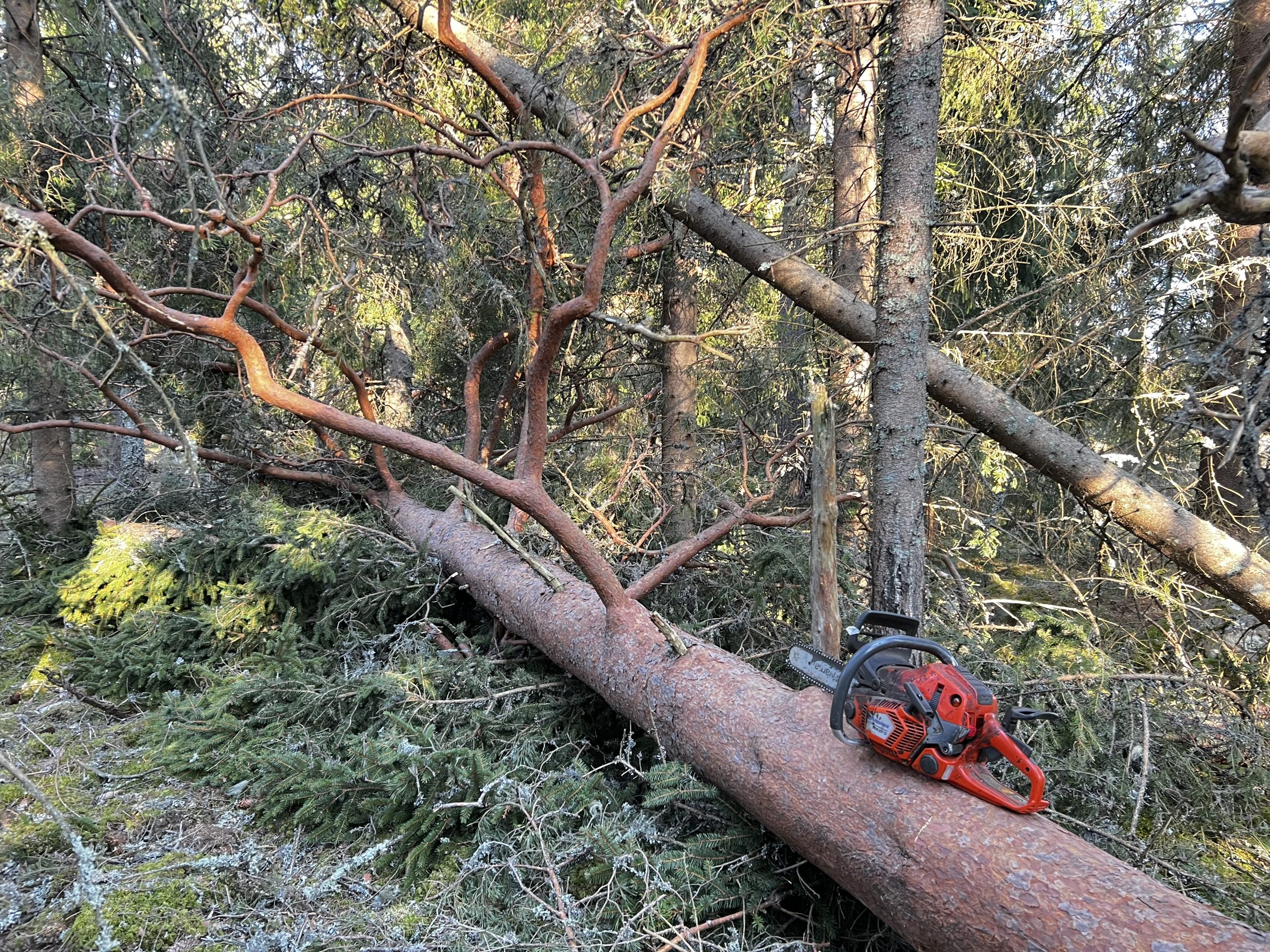 Om någon undrar vad vi har gjort i helgen så är det en lågoddsare. Några vindfällen mindre och en något större vedhög.