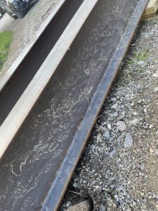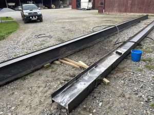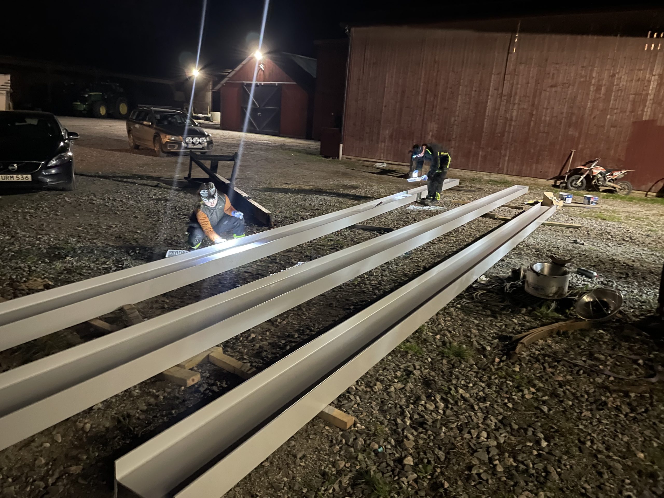 Några rejäla stålbalkar ingår i det här ladugårdsbygget och när det inte gick att få dem galvade i full längd valde vi målning istället.