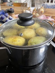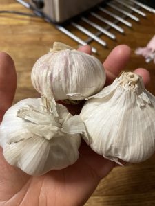 Dagens tips förresten: skala vitlök enkelt genom att slänga ner klyftorna i en kastrull med lock. Sedan skakar man bara svinhårt upp och ner en liten stund och tjipp, tjopp, alla klyftor ligger när som nakna små… ja klyftor, bland skalen!