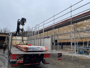 Det lyfts, bärs och justeras. Spikas och skruvas både högt och lågt.
