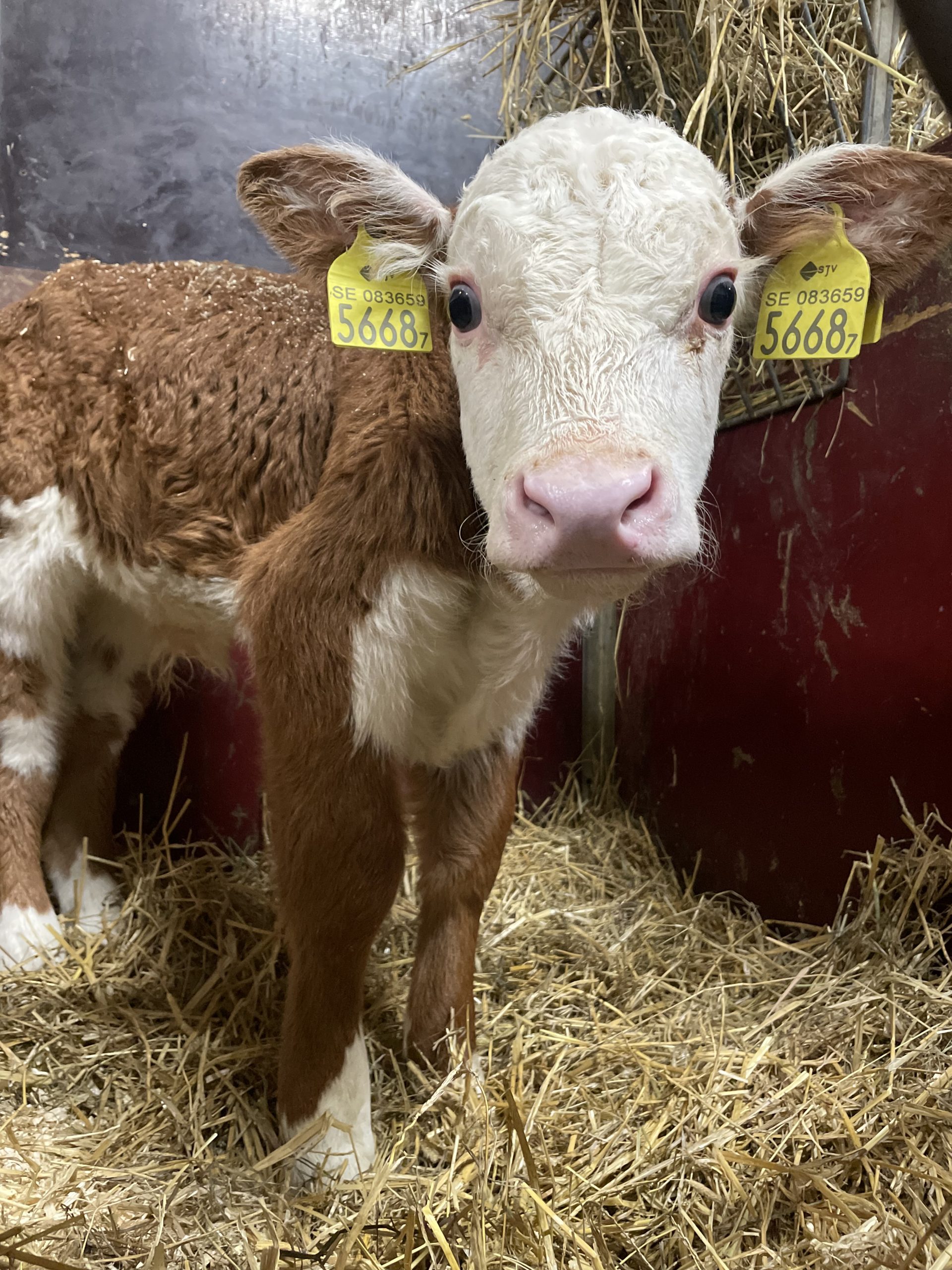 Bland alla mjölkraskalvar som köps in kommer ibland en liten köttis. Sivert är en pytteliten hetefordkorsning och helt underbart söt.