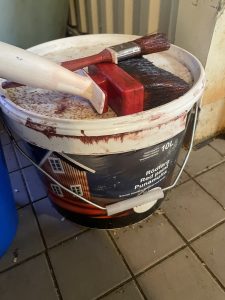 Trots minusgrader ska jag att ägna mig åt något så somrigt som fasadmålning idag. Vi har ställningen kvar på bygget två dagar till så vill man få någon färg på åtminstone gavelspetsarna får man trotsa årstiden. Tur att falurött är tåligt.