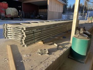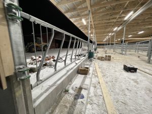 Vi kör diagonalfronter vid foderbordet precis som på det flesta andra ställen på gården. Det är funktionellt och gör det lätt för djuren att äta eftersom de gärna lyfter upp huvudena när de tuggar.