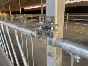 Nästa grej var ätfronterna vid foderbordet. De fungerar också som utrymningsväg, precis som portarna och grindarna vid skrapgången. Bara att öppna så djuren kan gå ut den vägen om det skulle behövas.