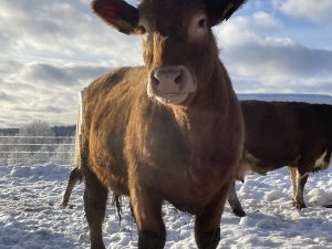 Den mest speciella är den här. Korsning Fjäll/Blonde av alla kombinationer man kan komma på. Jättefin och trevlig är hon. Och spännande att se hur hennes kalv kommer att se ut. Vilken ras som slår igenom mest. Tjuren hon gått med är också Blonde men man vet ju hur starka fjällgener kan vara. Bara att vänta och se framåt våren.