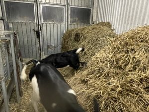 Henny tvättade kalvboxarna igår. Vilken fröjd att se. Det var ett tag sedan sist, dels på grund av kallt väder och dels för att slangen till högtryckstvätten har varit trasig. Nu är den utbytt och boxarna glänser. Nybäddat och klart när jag kom hem med vårt färskaste gäng kalvar från Kvarnsveden.