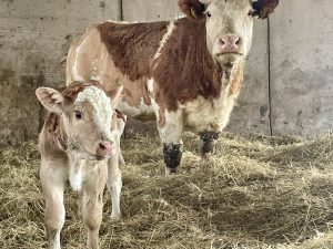 Så himla kul att det gick bra. Det är en väldigt fin kviga men man vet ju aldrig med första kalvningen. Om allt ska fungera, om hon ska visa gott moderskap och så vidare. Om inte så har man hoppats på och investerat i fel djur och det är ju alltid tråkigt.